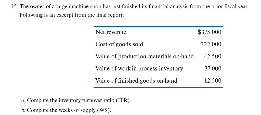 Solved 15 The Owner Of A Large Machine Shop Has Just Chegg Com